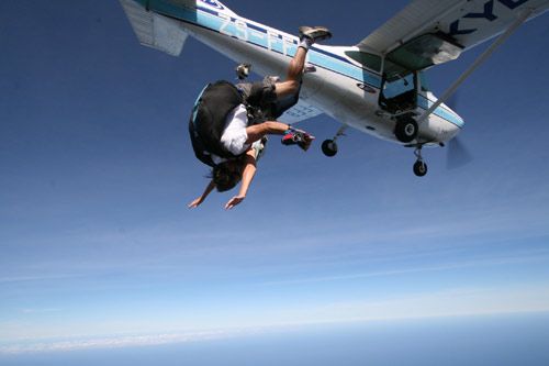 - Tandem Skydiving. Experience the thrill of free-falling for 35 seconds at 200KPH over one of the most scenic dropzones on the planet. Skydive Plett has very experienced Jump Masters who will brief you on all aspects of the jump, including safety. Landings at Plett's Central Beach can be arranged. Based at Plettenberg Bay Airport, the dropzone is just 25 minutes drive from Hog Hollow Country Lodge. This email address is being protected from spambots. You need JavaScript enabled to view it. to send a booking enquiry, or call +27-82-905-7440.